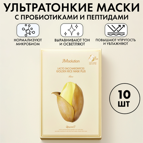 Маски с пробиотиками и пептидами для обновления кожи LACTO SACCHAROMYCES GOLDEN RICE MASK PLUS, 10 штук
