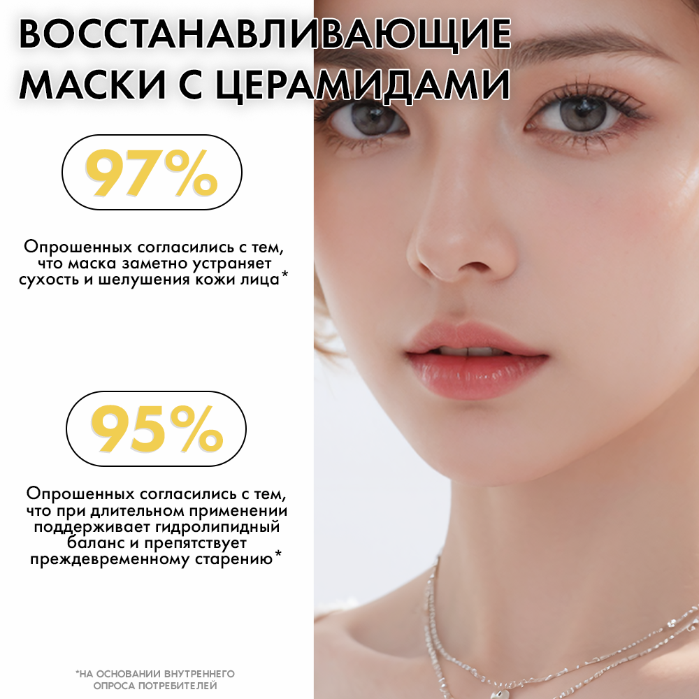 Маска для лица с церамидами интенсивно увлажняет и питает клетки эпидермиса, восстанавливает гидро-липидный барьер, укрепляет тургор и замедляет процессы старения. Церамиды, акваксил и экстракт березы повышают упругость кожи, ускоряют процессы регенерации и разглаживают кожный рельеф. Ультратонкая основа маски плотно прилегает к лицу, доставляя полезные вещества клеткам кожи эффективнее. Мягкое, но в то же время, уверенное действие маски благотворно влияет на чувствительную кожу, успокаивая и защищая ее.