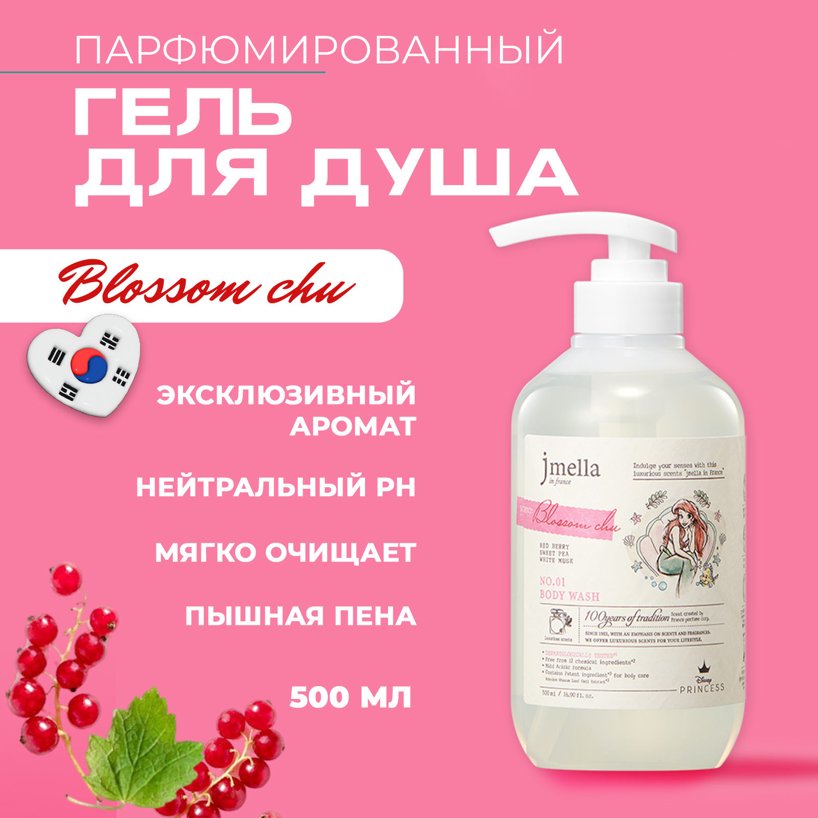 Деликатный гель для душа с нейтральным уровнем pH- 5,5 Jmella In France Disney Blossom Chu Body Wash бережно очищает кожу и обладает пролонгированным увлажняющим действием. Содержит 30 растительных экстрактов и комплекс из 6 видов масел, предотвращает появление сухости и шелушений, питает и ухаживает за кожей. Содержит натуральные очищающие вещества и обладает тонким ароматом красной смородины, душистого перца и белого мускуса. Гель протестирован дерматологами и подходит для всех типов кожи, включая чувствительную.