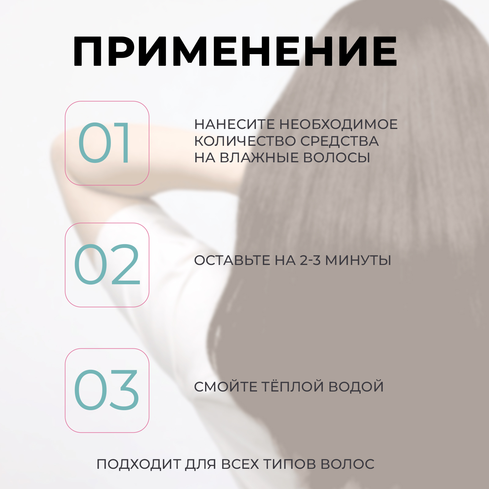 Способ применения: нанесите необходимое количество средства на влажные волосы, оставьте на 2-3 минуты. Смойте теплой водой. Подходит для всех типов волос.
