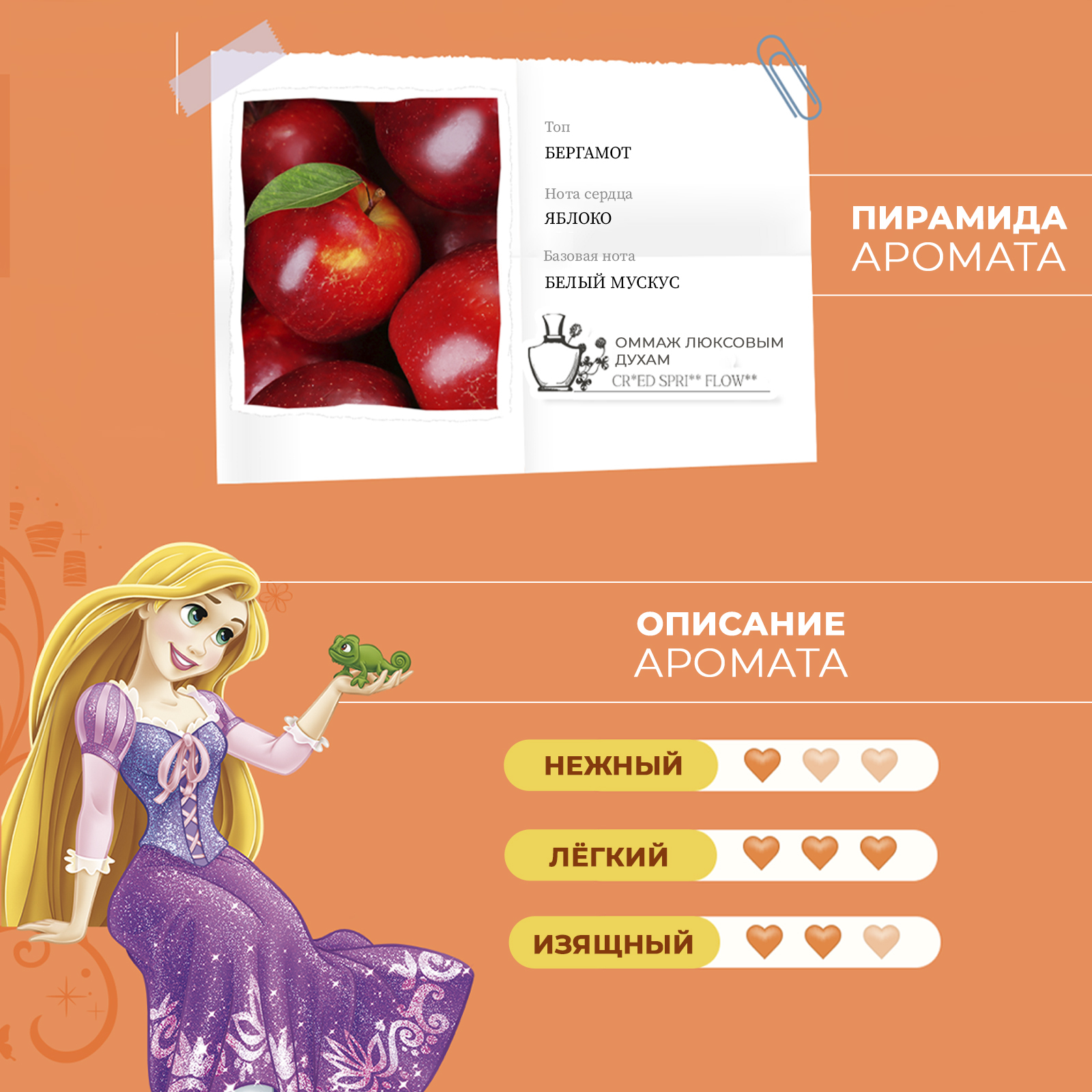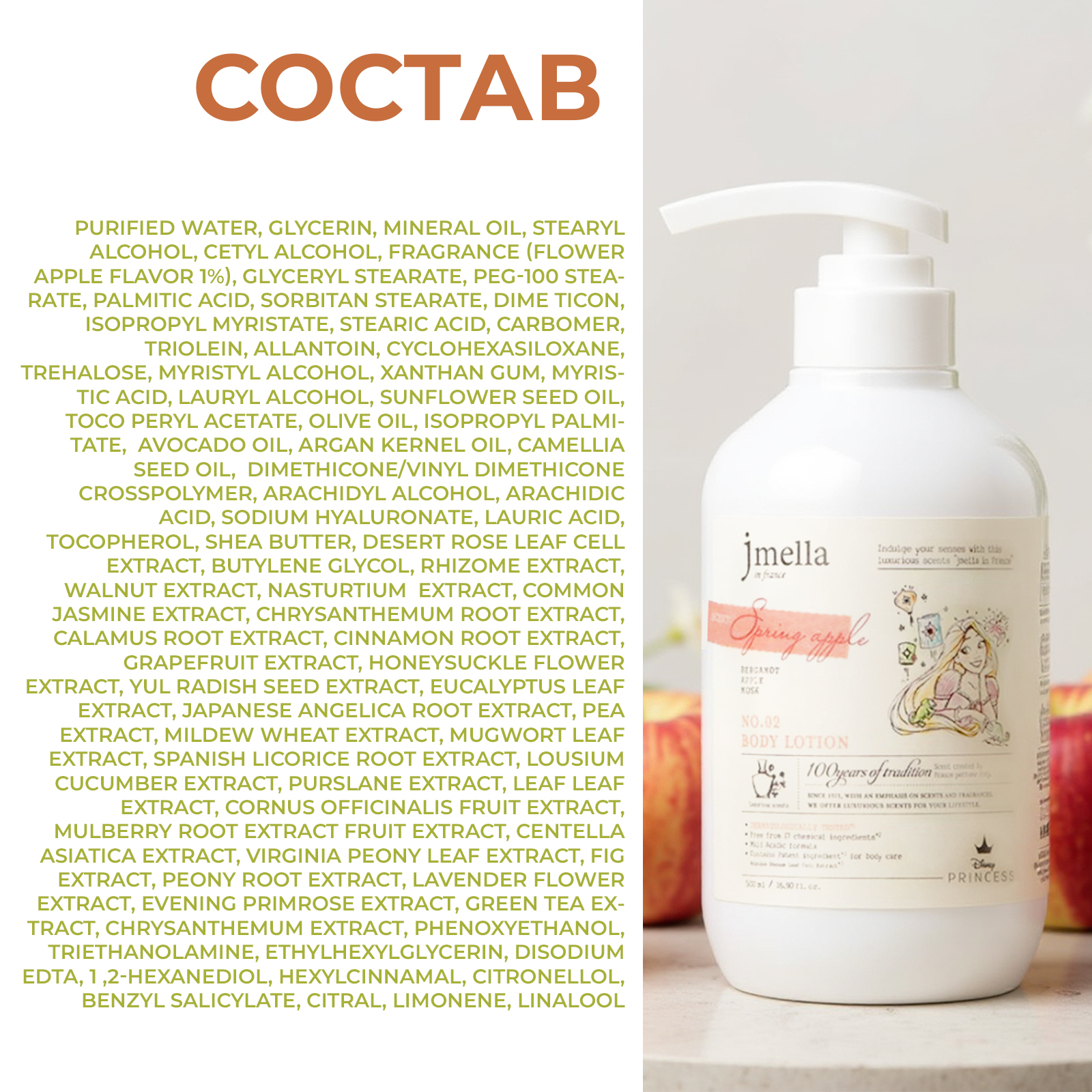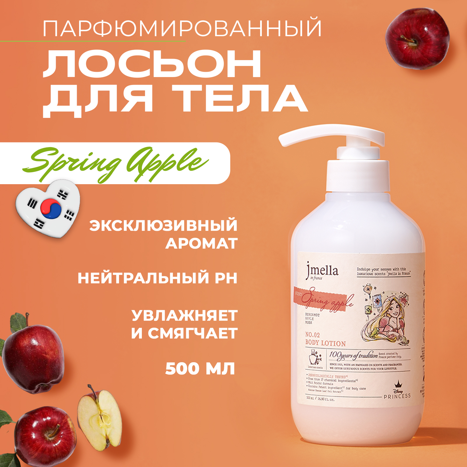 Парфюмированный лосьон для тела с ароматом бергамота, яблока и мускуса Jmella In France Disney Spring Apple Body Lotion обладает пролонгированным увлажняющим действием. Смягчает и питает, препятствует появлению сухости и шелушений. Входящие в состав растительные экстракты и комплекс из 6 видов масел способствуют выработке коллагена и эластина, стимулируют регенерацию клеток и укрепляют гидролипидный барьер кожи, защищают от агрессивного воздействия внешних факторов и препятствуют преждевременному старению. Лосьон для тела с тонким ароматом бережно ухаживает за кожей, выравнивает тургор, осветляет пигментацию и дарит естественное сияние.