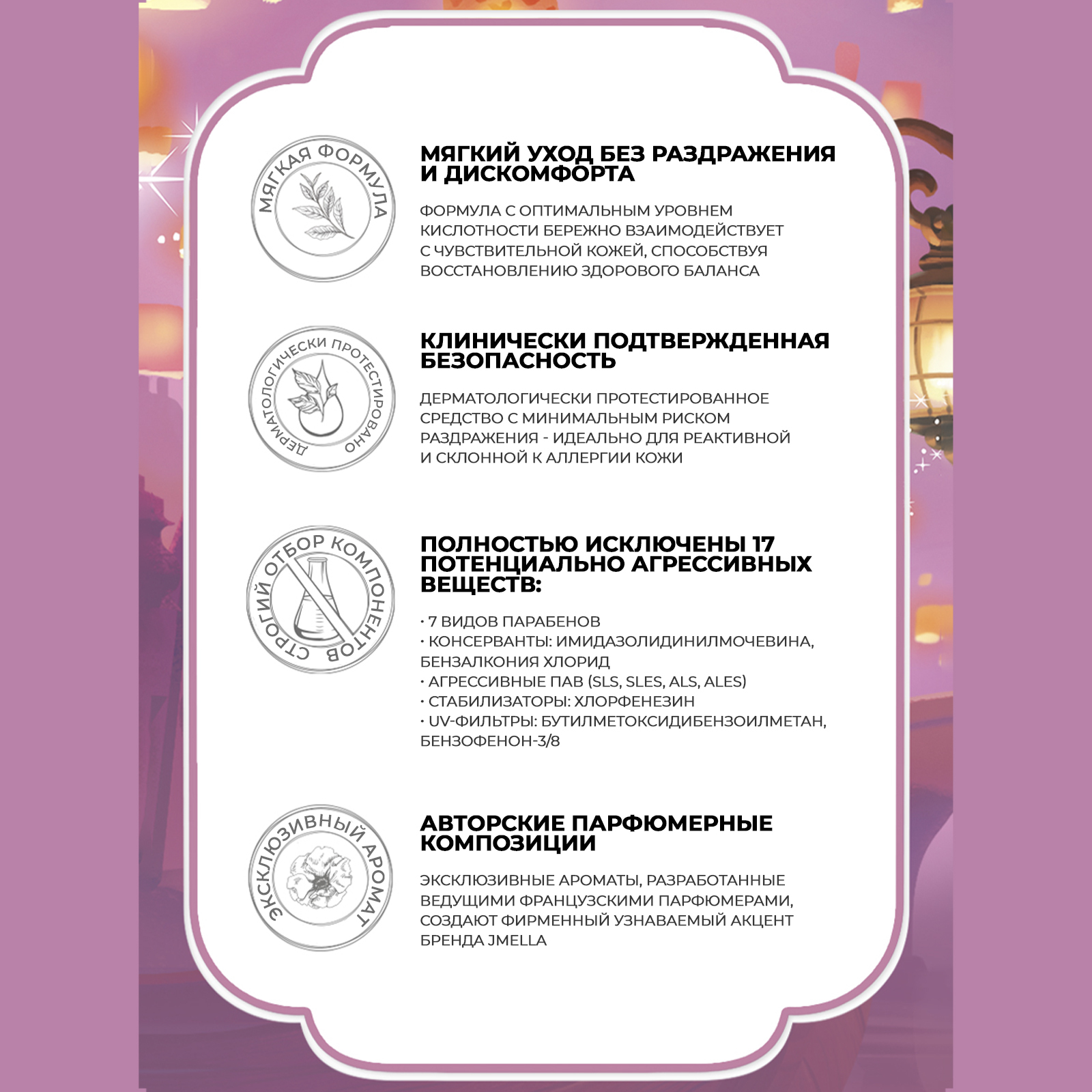 Состав: Purified water, glycerin, mineral oil, stearyl alcohol, cetyl alcohol, fragrance (flower apple flavor 1%), glyceryl stearate, PEG-100 stearate, palmitic acid, sorbitan stearate, dime Ticon, isopropyl myristate, stearic acid, carbomer, triolein, allantoin, cyclohexasiloxane, trehalose, myristyl alcohol, xanthan gum, myristic acid, lauryl alcohol, sunflower seed oil, toco Peryl acetate, olive oil, isopropyl palmitate, avocado oil, argan kernel oil, camellia seed oil, dimethicone/vinyl dimethicone crosspolymer, arachidyl alcohol, arachidic acid, sodium hyaluronate, lauric Acid, tocopherol, shea butter, desert rose leaf cell extract, butylene glycol, rhizome extract, walnut extract, nasturtium extract, common jasmine extract, chrysanthemum root extract, calamus root extract, cinnamon root extract, grapefruit extract, honeysuckle flower Extract, Yul radish seed extract, Eucalyptus leaf extract, Japanese Angelica root extract, Pea extract, Mildew wheat extract, Mugwort leaf extract, Spanish licorice root extract, Lousium cucumber extract, Purslane extract, Leaf leaf extract, Cornus officinalis fruit extract, Mulberry root extract Fruit extract, Centella asiatica extract, Virginia Peony leaf extract, fig extract, peony root extract, lavender flower extract, evening primrose extract, green tea extract, chrysanthemum extract, phenoxyethanol, triethanolamine, ethylhexylglycerin, disodium EDTA, 1 ,2-hexanediol, hexylcinnamal, citronellol, benzyl salicylate, citral, limonene, linalool