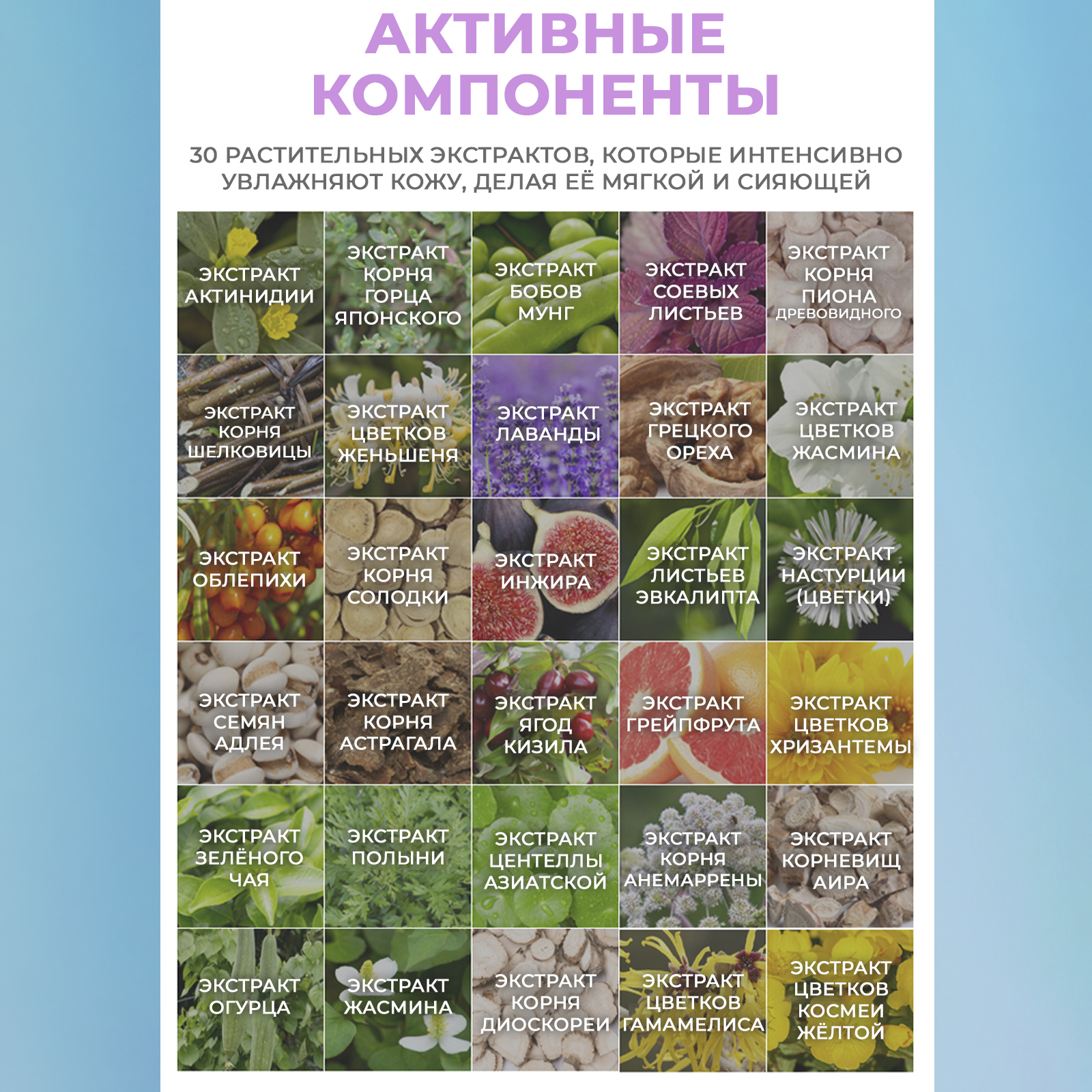 - Комплекс из 30 растительных экстрактов глубоко питает и насыщает витаминами. Обладает естественными противовоспалительными свойствами устраняет покраснения и раздражение, улучшает состояние кожи и препятствует преждевременному старению
