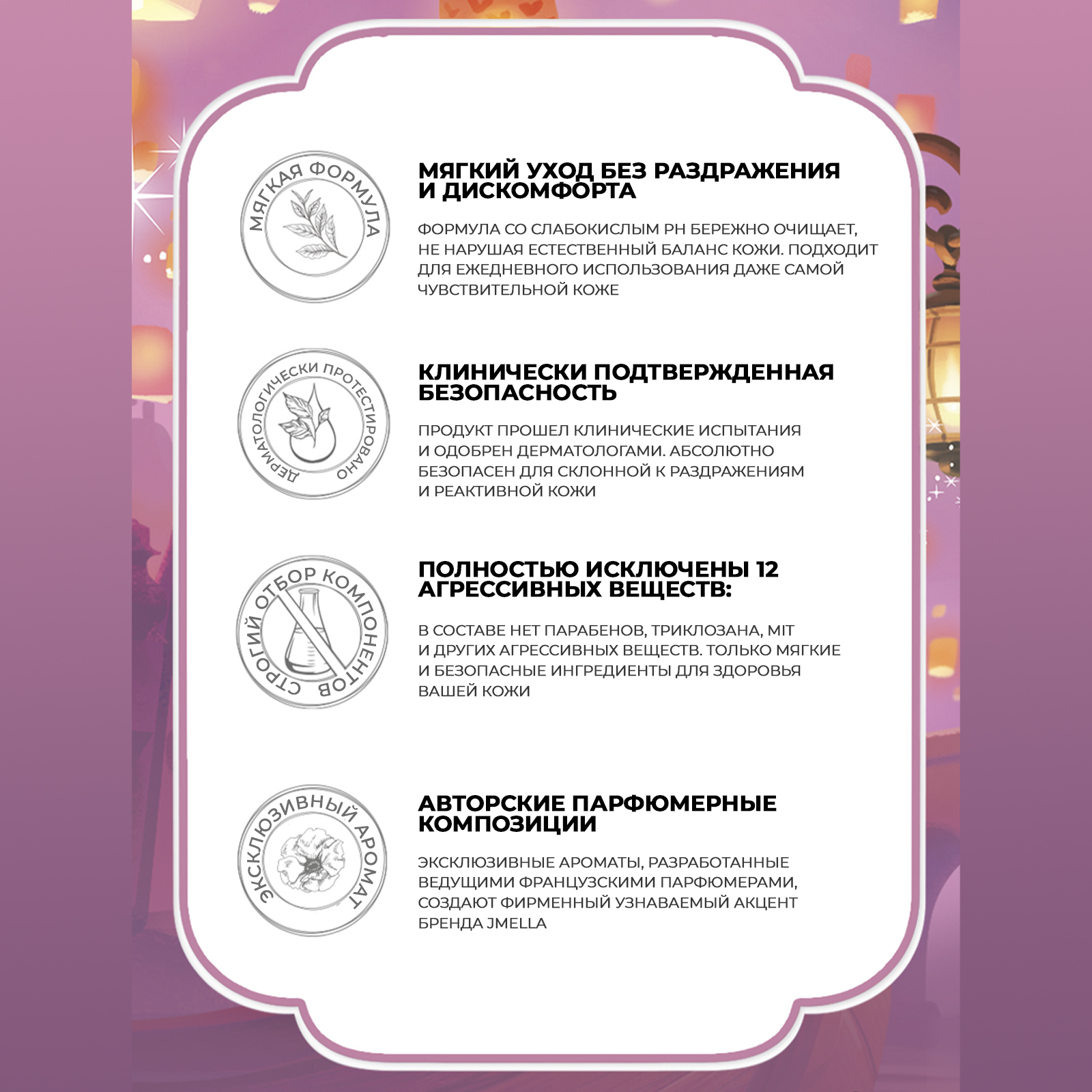- Комплекс карбоновых кислот (Лимонная, Лауриновая, Стеариновая) деликатно отшелушивает и дарит антиоксидантную защиту