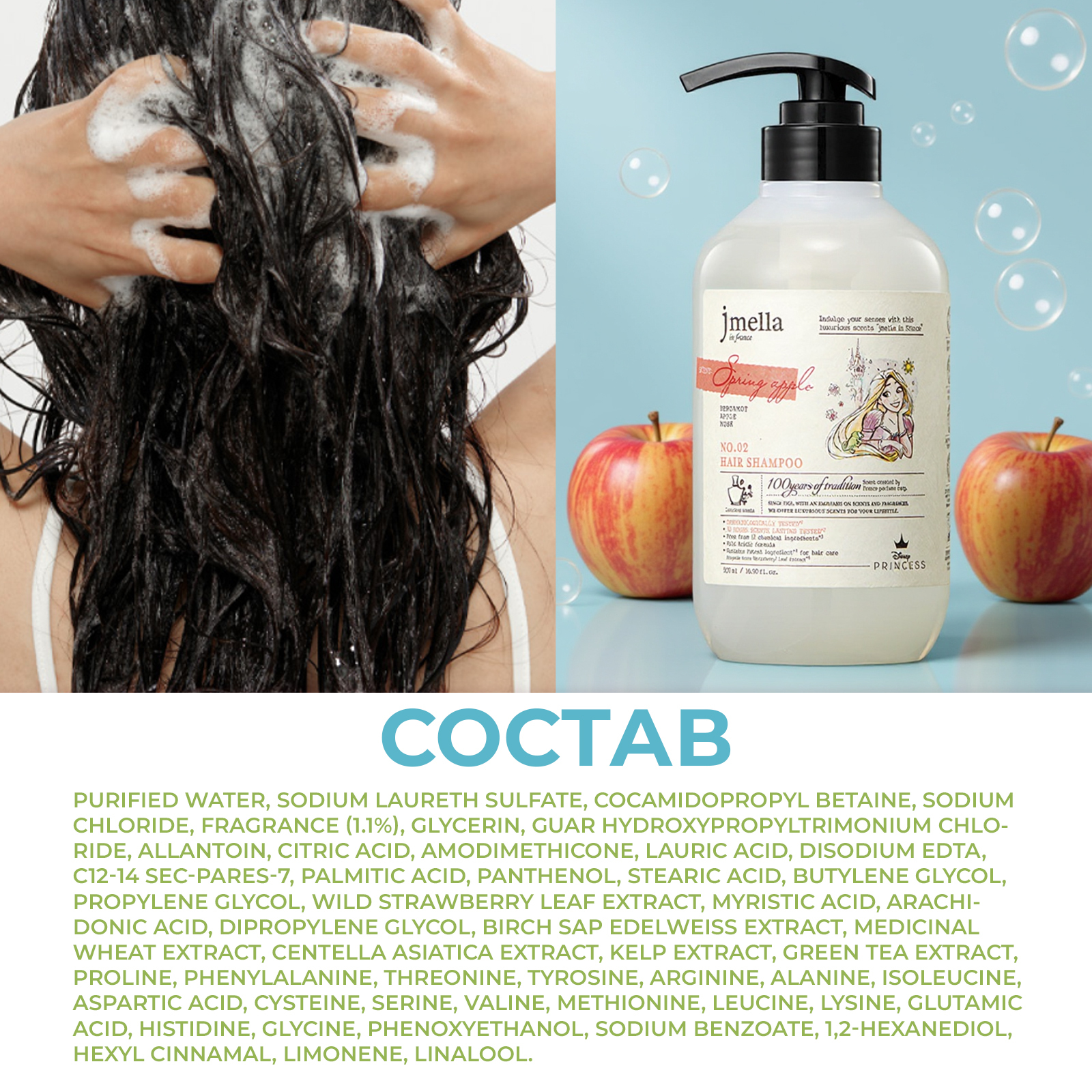 Мягкий слабокислотный шампунь Jmella In France Disney Spring Apple Hair Shampoo, обладает нейтральным уровнем pH. Бережно очищает волосы и кожу головы. Укрепляет и восстанавливает ослабленные и поврежденные волосы, предупреждает ломкость и расслоение кончиков. Запатентованная формула с экстрактом листьев земляники наполняет питательными веществами, которые обеспечивают мягкий уход, сияние и блеск волос. Мягкая пенка шампуня превосходно смывается, не сушит волосы и кожу головы. Тонкий аромат шампуня раскрывается в течении дня чарующими запахами бергамота, яблока и мускуса. Подходит для ежедневного использования.