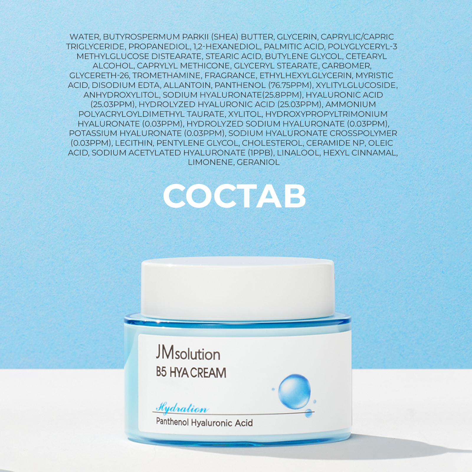 Роскошный питательный крем с гиалуроновой кислотой и пантенолом , Jmsolution B5 Hya Cream — идеальное решение для глубокого увлажнения и восстановления кожи. Формула, обогащенная маслом ши и церамидами, обеспечивает комплексный уход за кожей, делая её мягкой, гладкой и сияющей.