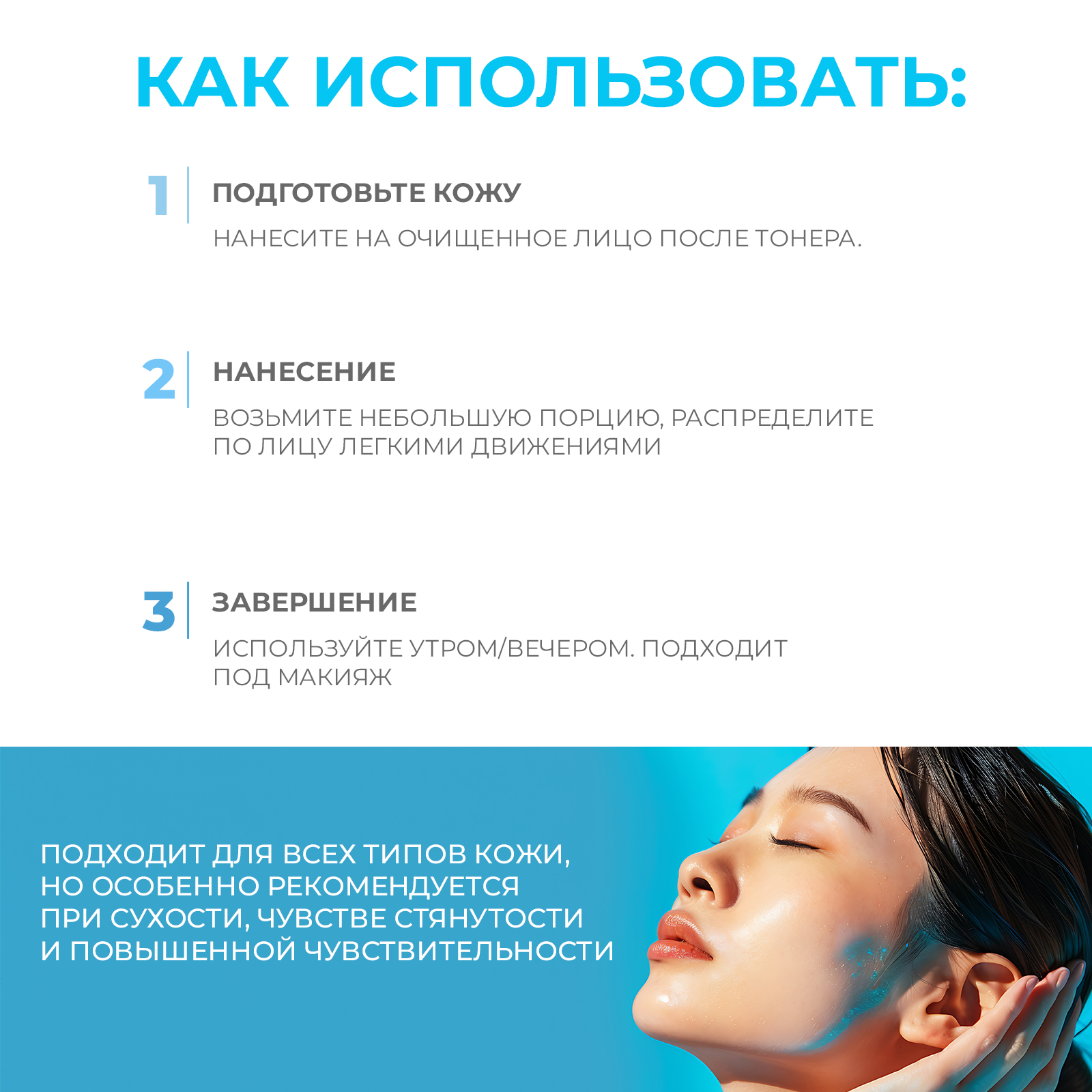 Способ применения: Нанесите небольшое количество эмульсии на очищенную кожу лица и шеи легкими массажными движениями. Используйте утром и вечером для достижения максимального эффекта.