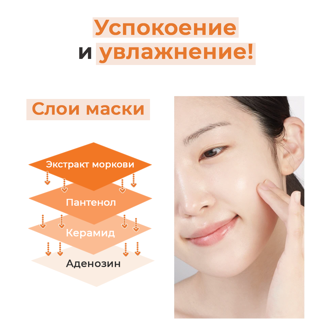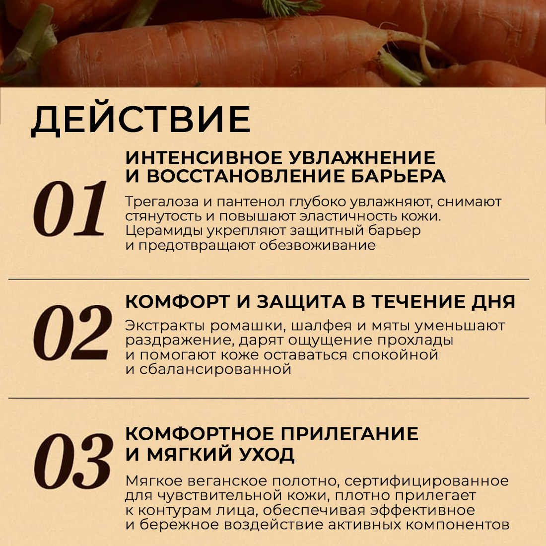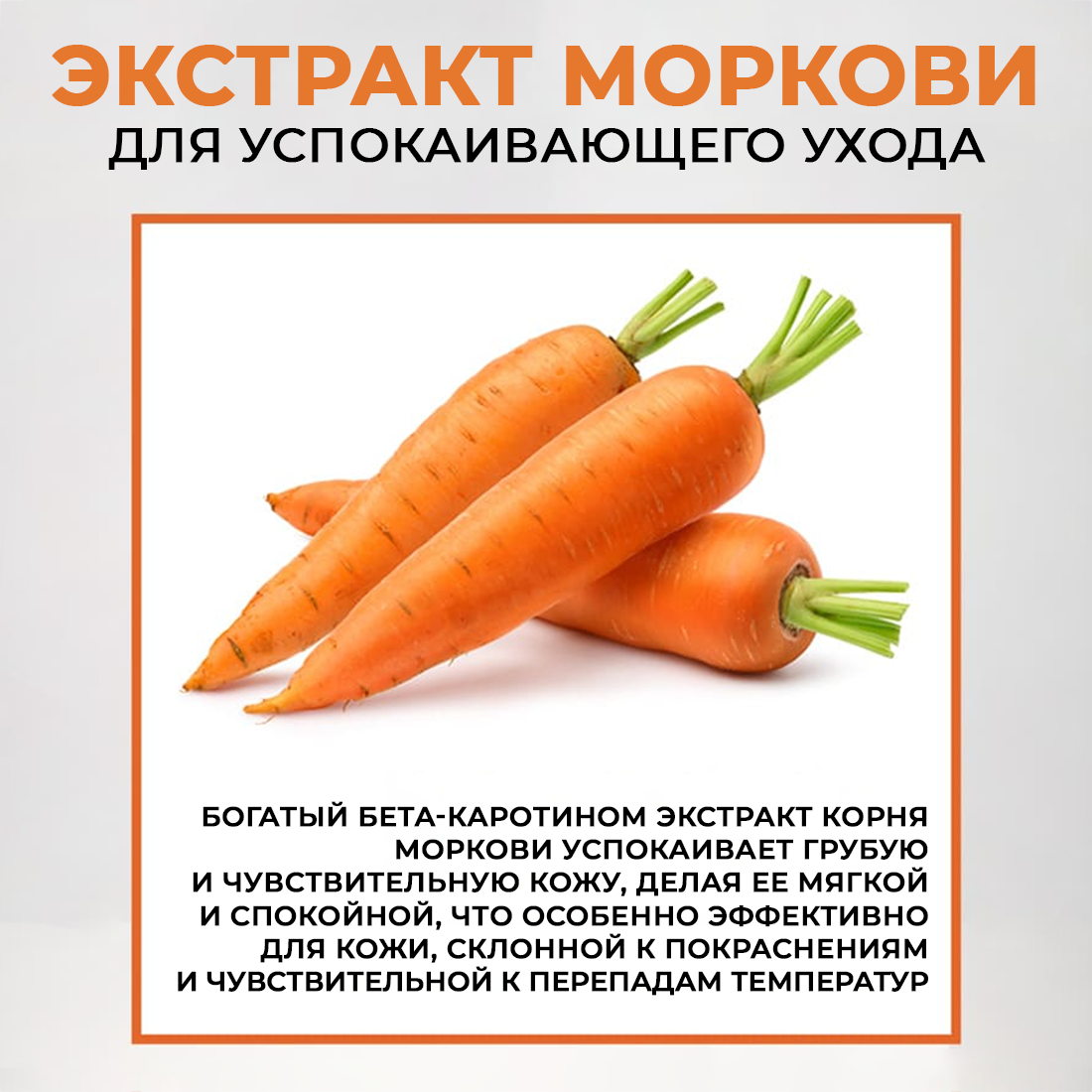 Экстракт моркови – борется с тусклостью, придает коже здоровый, свежий оттенок.