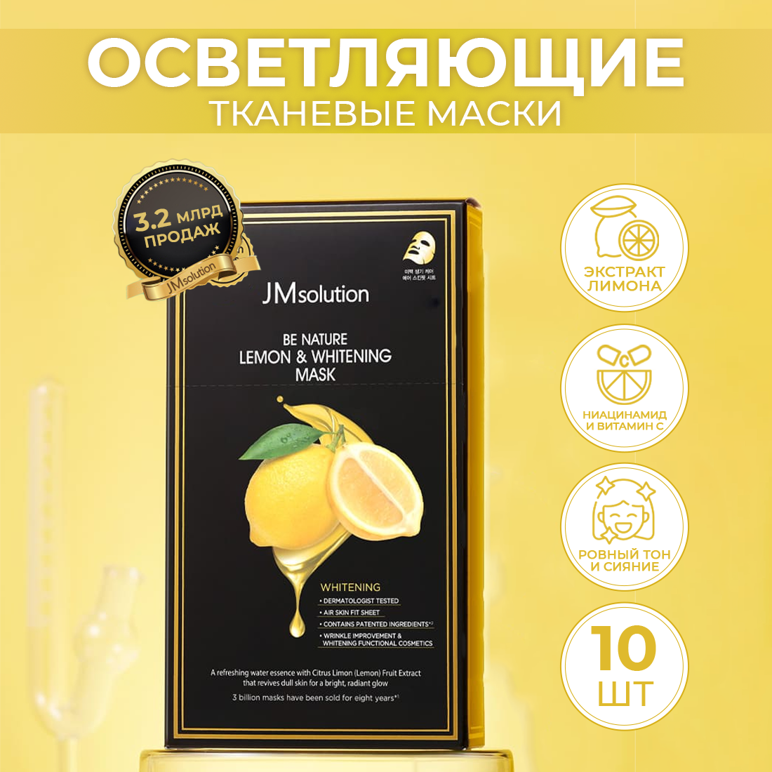Маска JMSOLUTION BE NATURE LEMON & WHITENING MASK целенаправленно борется с тусклостью, пигментацией и неровным тоном. Насыщенная эссенция глубоко проникает в кожу, обеспечивая интенсивное увлажнение благодаря 5 видам гиалуроновой кислоты, в то время как экстракт лимона тонизирует и придает лицу здоровое сияние. Идеально подходит для уставшей, тусклой кожи, нуждающейся в осветлении.
