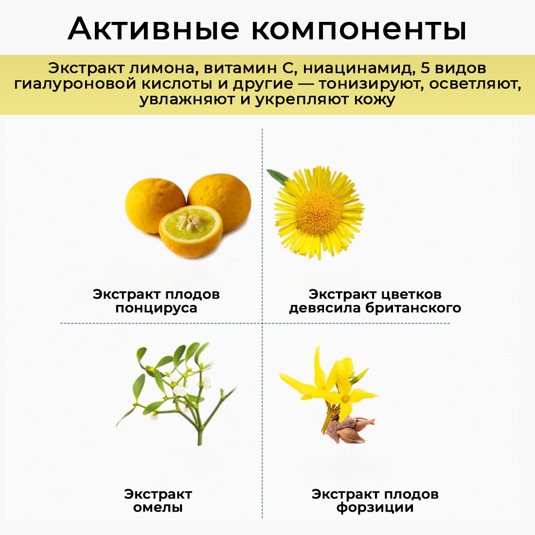 Экстракт лимона (Citrus Limon (Lemon) Fruit Extract) – мягко тонизирует, освежает, сужает поры и придает коже естественную, "солнечную" яркость.