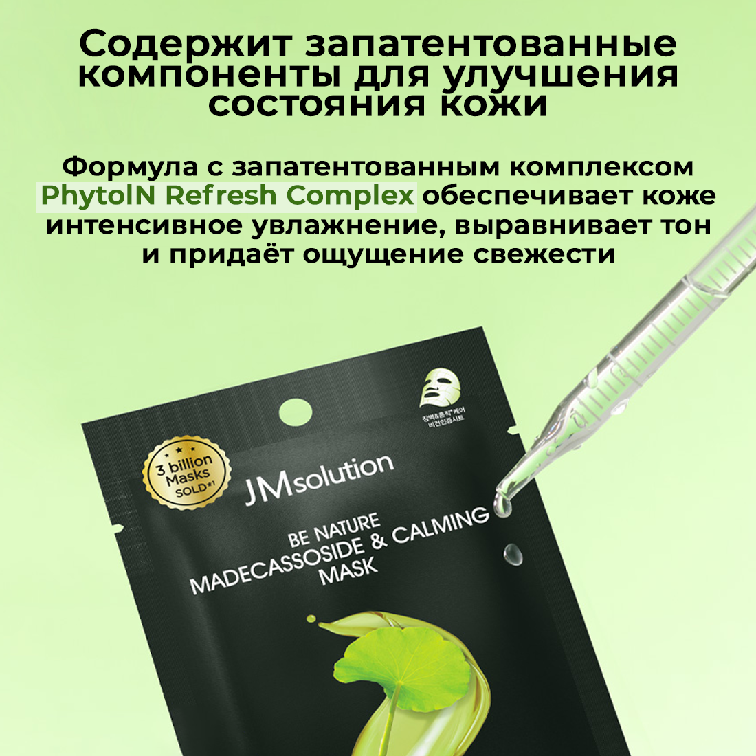 Маска JMSOLUTION BE NATURE MADECASSOSIDE CALMING MASK создана для мгновенного снятия раздражения, восстановления и глубокого успокоения даже самой чувствительной и реактивной кожи. Тканевая маска обеспечивает интенсивный уход, возвращая лицу здоровый, ровный тон и комфорт. Эссенция обильно увлажняет кожу, предотвращая сухость и шелушение, при этом не оставляя ощущения липкости. Идеально подходит для снятия стресса кожи, а также для ежедневного поддержания баланса и защиты кожи.