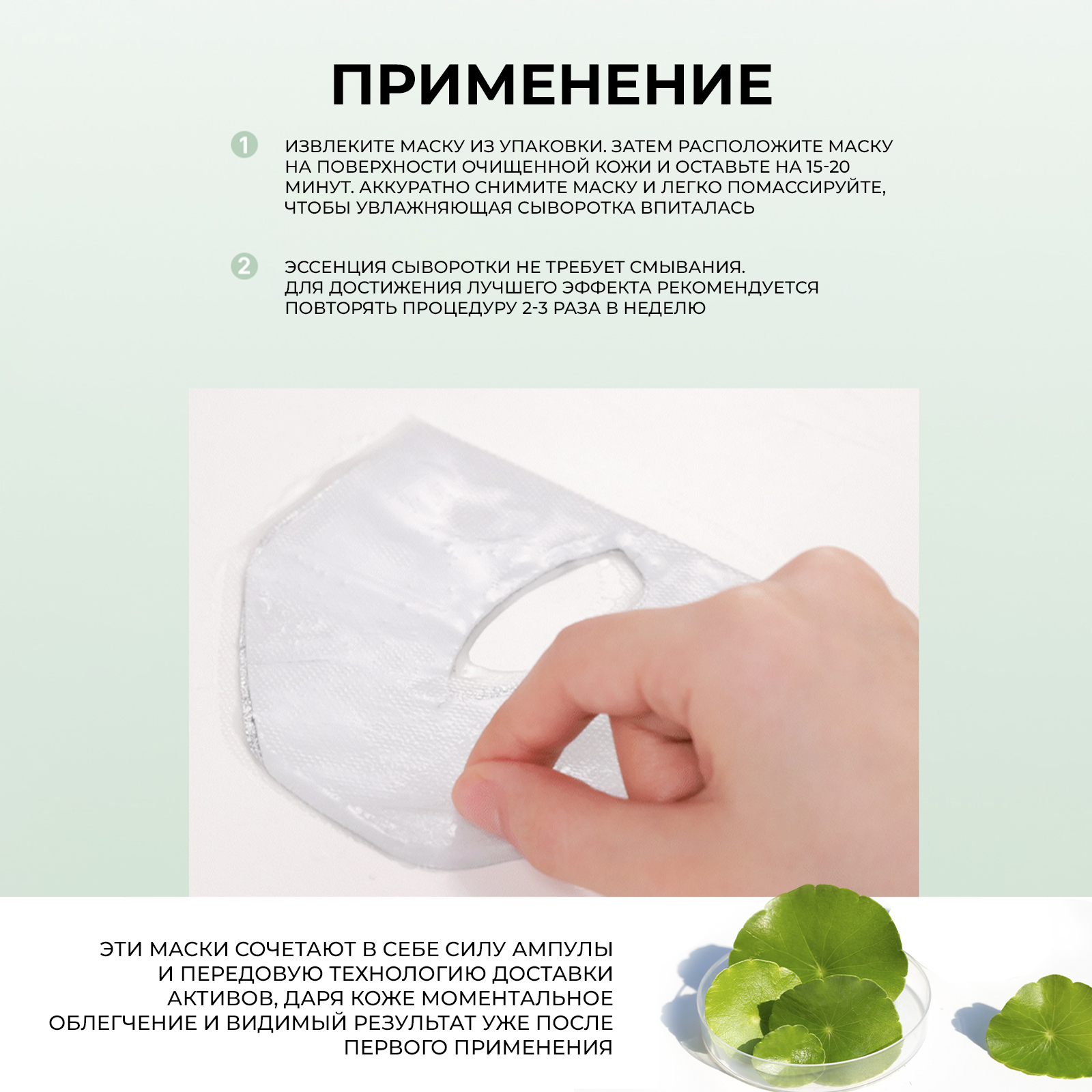 Способ применения: извлеките маску из упаковки. Затем расположите маску на поверхности очищенной кожи и оставьте на 15-20 минут. Аккуратно снимите маску и легко помассируйте, чтобы увлажняющая сыворотка впиталась. Эссенция сыворотки не требует смывания. Для достижения лучшего эффекта рекомендуется повторять процедуру 2-3 раза в неделю. Идеально для: