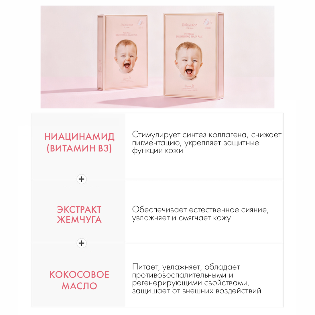 Маска для осветляющего эффекта кожи. Специально разработанная серия масок "Мама" для будущих мам, и для людей с сухой и чувствительной кожей, с самой безопасной формулой, чтобы избежать раздражения. Маска обеспечивает осветляющий эффект, а также естественное сияние и блеск. Ключевые ингредиенты: бисаболол уменьшает покраснения, шелушение, зуд и восстанавливает ее природный тонус. Витамин B3 (Ниацинамид) способствует стимуляции синтеза коллагена, снижению пигментации и улучшению защитных функций кожи. Экстракт жемчуга обеспечивает сияние, увлажнение лица. Маска смягчает, повышает эластичность кожи, увлажняет, сужает поры, успокаивает.