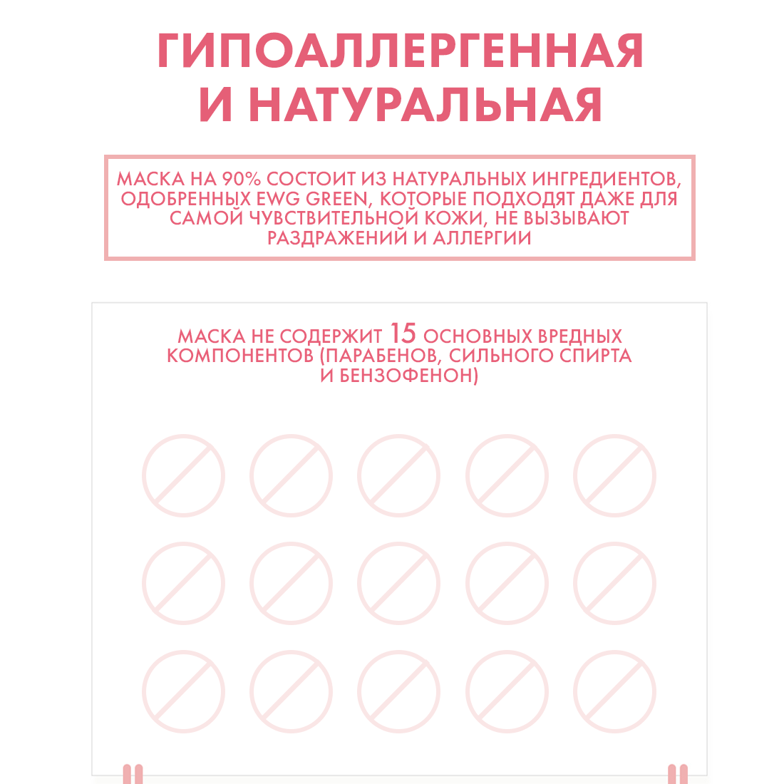 Специально разработанная серия масок для будущих мам, и для людей с сухой и чувствительной кожей, с самой безопасной формулой, чтобы избежать чувствительности. Маска обеспечивает глубокое питание и увлажнение кожи, улучшает эластичность и тонус кожи, обладает мощным восстанавливающим воздействием. В состав маски входят 20 видов аминокислот. Аминокислотный комплекс улучшает тургор кожи, защищает от воздействия внешних радикалов и укрепляет кожный иммунитет.
