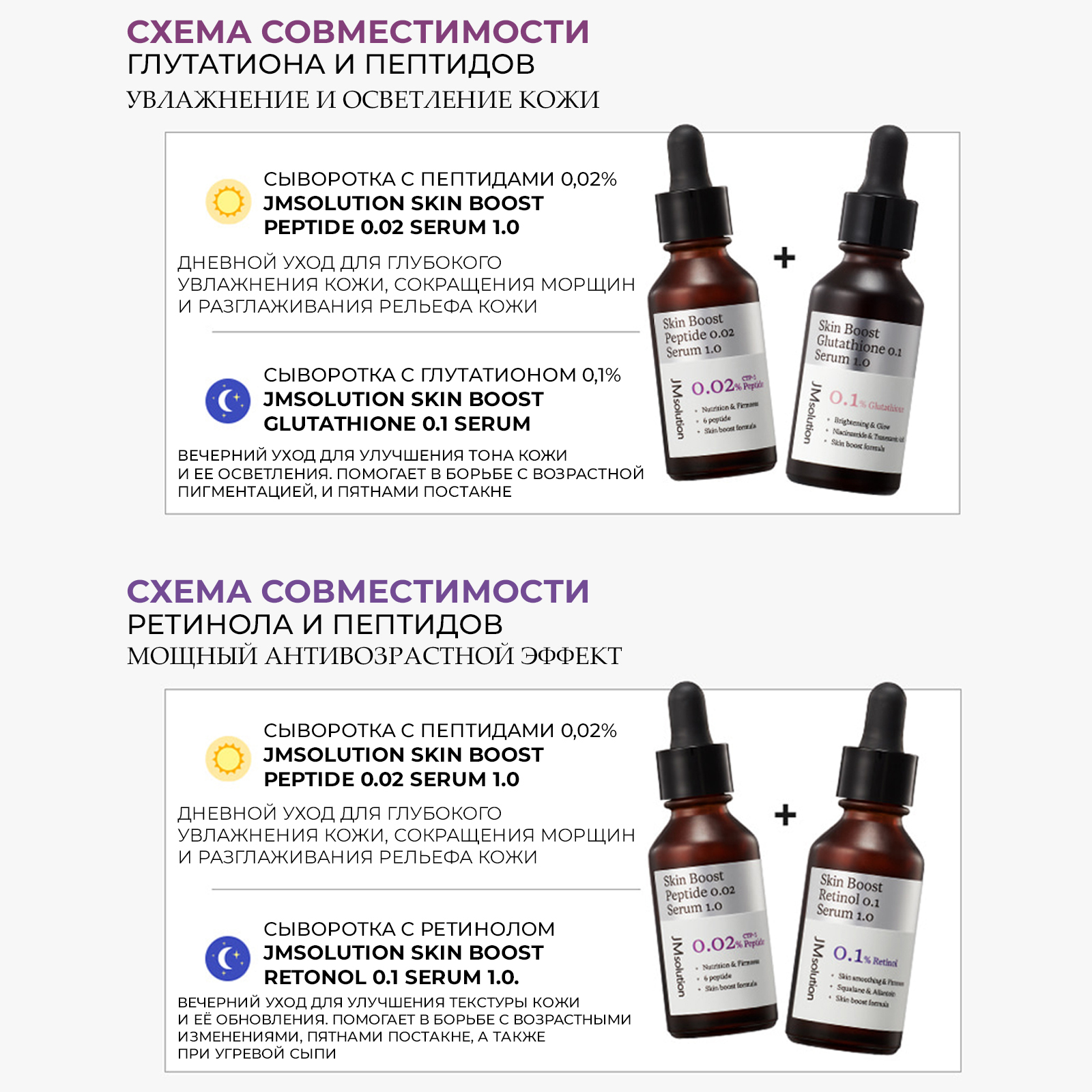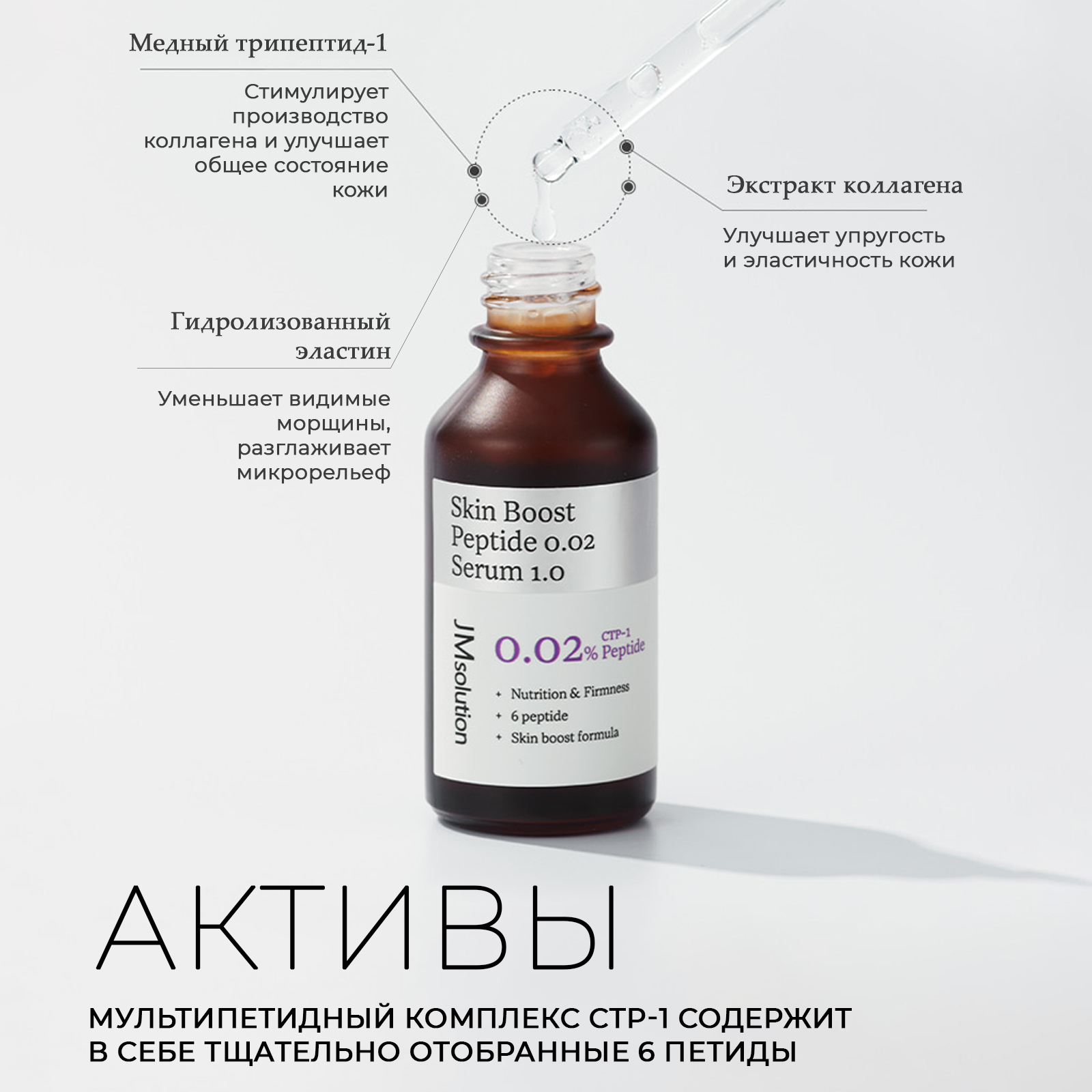 День - СЫВОРОТКА С ПЕПТИДАМИ 0,02% JMSOLUTION SKIN BOOST PEPTIDE 0.02 SERUM 1.0 Дневной уход для глубокого увлажнения кожи, сокращения морщин и разглаживания рельефа кожи.