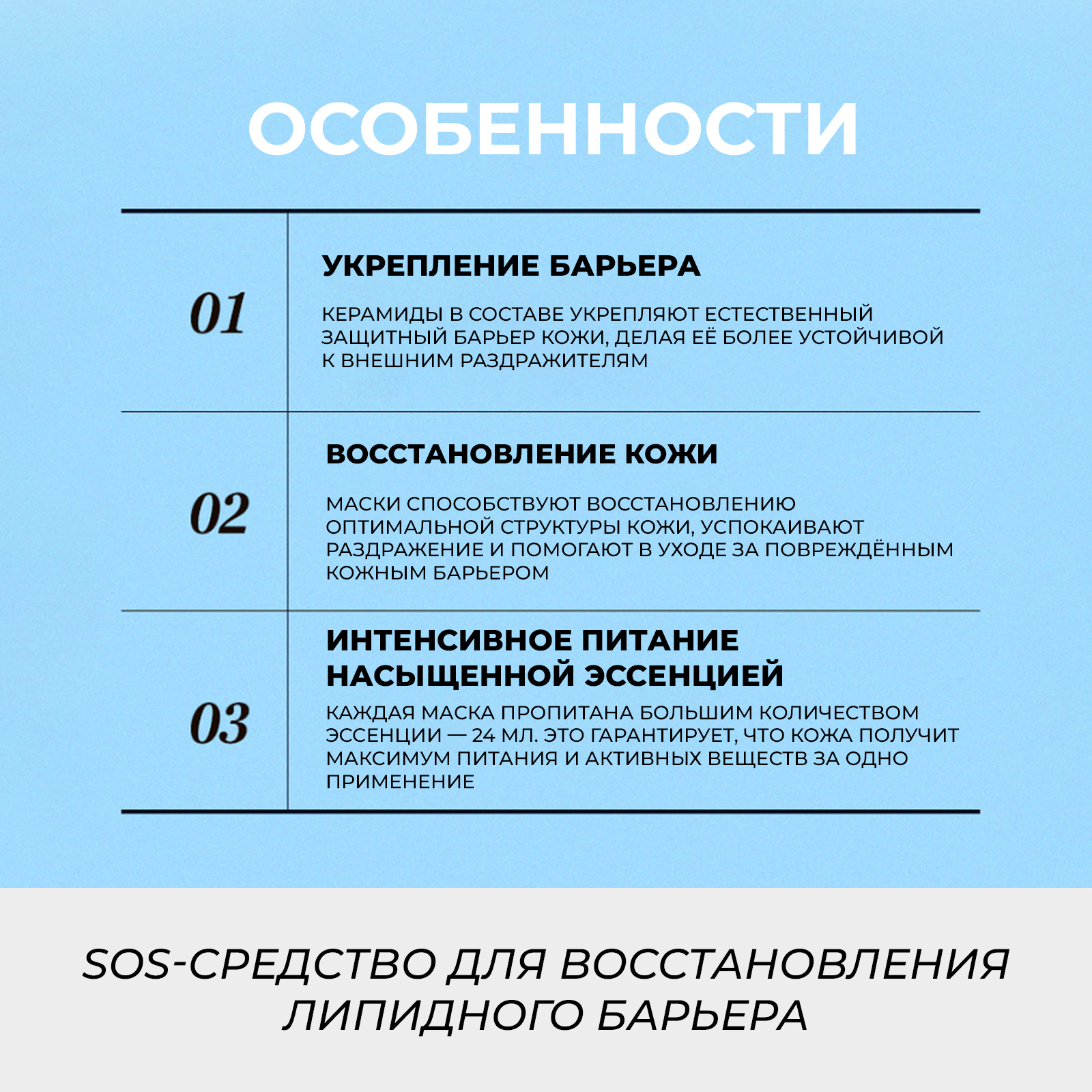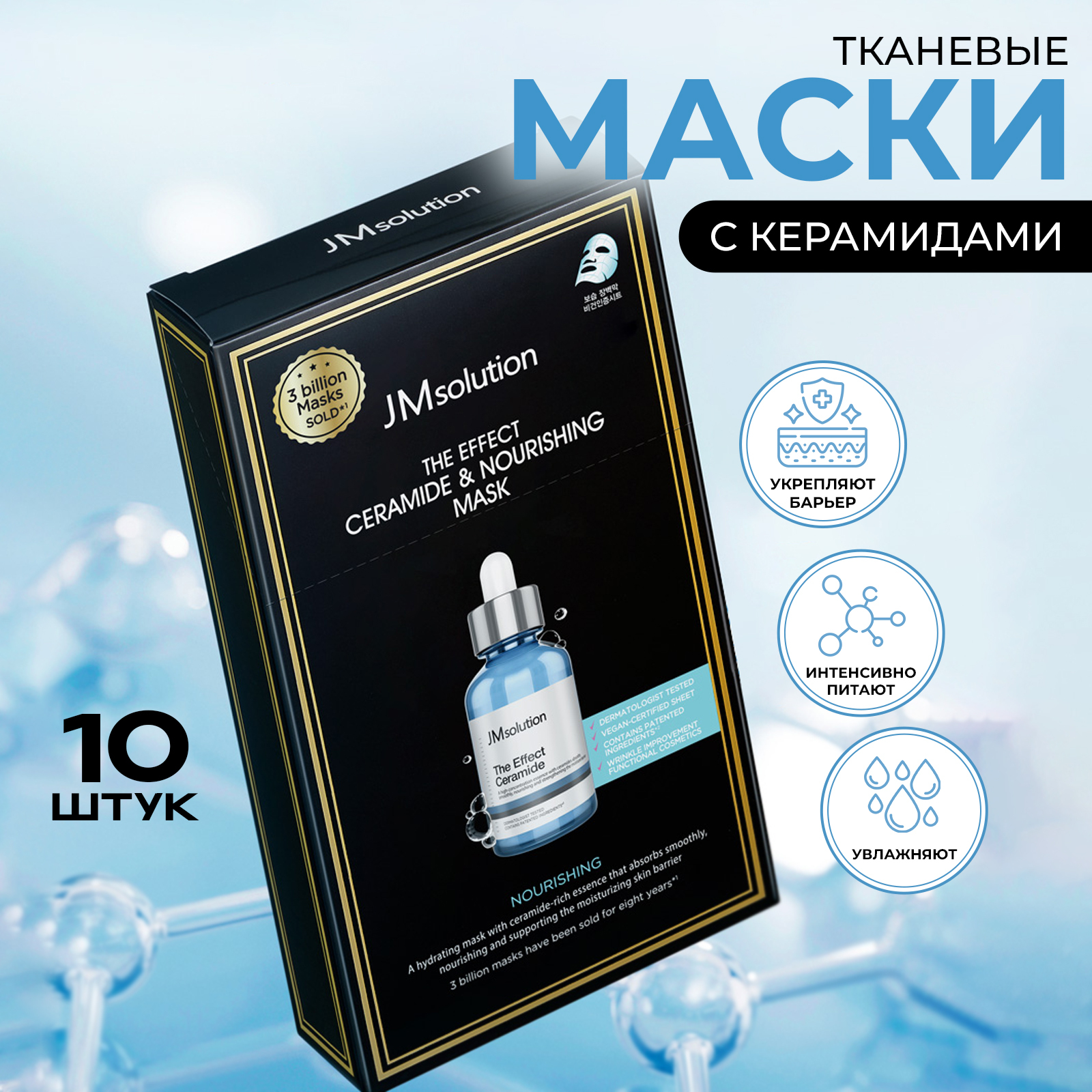 Ваша кожа сухая, раздраженная или ослаблена агрессивными факторами? Тканевая маска JMSOLUTION THE EFFECT CERAMIDE NOURISHING MASK — SOS-средство для восстановления липидного барьера. Содержит Керамиды NP, Пробиотики и Гиалуроновую кислоту, которые мгновенно успокаивают, глубоко увлажняют и укрепляют естественную защиту кожи от потери влаги и внешних раздражителей. В современном ритме жизни кожа постоянно подвергается стрессу, что приводит к нарушению ее защитного барьера, сухости и шелушению. THE EFFECT CERAMIDE NOURISHING MASK от JMSOLUTION разработана для экстренного восстановления и длительного питания, возвращая коже комфорт и эластичность.