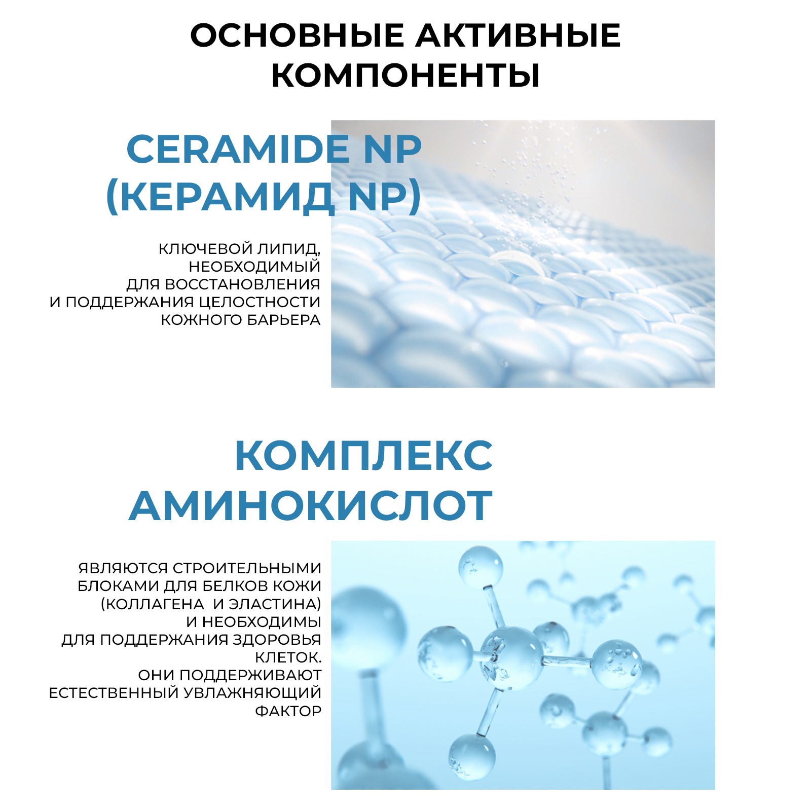 Комплекс Аминокислот (Histidine, Proline, Phenylalanine и др.) - являются строительными блоками для белков кожи (коллагена и эластина) и необходимы для поддержания здоровья клеток. Они поддерживают естественный увлажняющий фактор (NMF).
