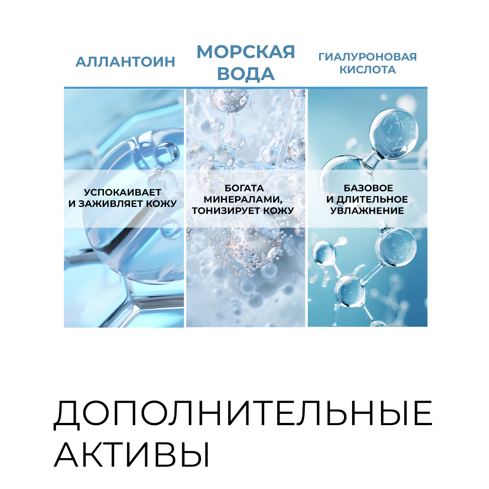 Состав: Water, Glycerin, Dipropylene Glycol, Methylpropanediol, Phenoxyethanol, Phenyl Trimethicone, Triethylhexanoin, Polyglyceryl-10 Oleate, PEG-40 Hydrogenated Castor Oil, Allantoin, Arginine, Carbomer, Ethylhexylglycerin, Adenosine, Hydroxyethylcellulose, Fragrance, Sodium Polyacrylate, Disodium EDTA, 1,2-Hexanediol, Butylene Glycol, Sea Water, Caprylic/Capric Triglyceride, Ulmus Campestris (Elm) Bark Extract, Glycine Max (Soybean) Seed Extract, Hydrogenated Phosphatidylcholine, Sodium Hyaluronate, Sucrose Stearate, Aspergillus Ferment, Bacillus Ferment, Lactobacillus Ferment, Hexyl Laurate, Stearic Acid, Palmitic Acid, Ceramide NP, Hydrolyzed Hyaluronic Acid, Hydrolyzed Sodium Hyaluronate, Histidine, Proline, Phenylalanine, Threonine, Tyrosine, Alanine, Isoleucine, Aspartic Acid, Cysteine, Serine, Valine, Methionine, Leucine, Lysine, Glutamic Acid, Glycine, Hydroxypropyltrimonium Hyaluronate, Cholesterol, Sodium Acetylated Hyaluronate, Glycosphingolipids, Dimethylsilanol Hyaluronate, Sodium Hyaluronate Crosspolymer, Hyaluronic Acid, Pentylene Glycol, Potassium Hyaluronate.