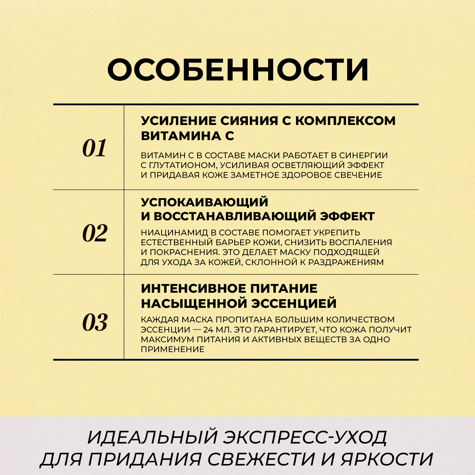 Способ применения: извлеките маску из упаковки. Затем расположите маску на поверхности очищенной кожи и оставьте на 15-20 минут. Аккуратно снимите маску и легко помассируйте, чтобы увлажняющая сыворотка впиталась. Эссенция сыворотки не требует смывания. Для достижения лучшего эффекта рекомендуется повторять процедуру 2-3 раза в неделю. Тип кожи: Тусклая, уставшая, с неровным тоном, склонная к пигментации.