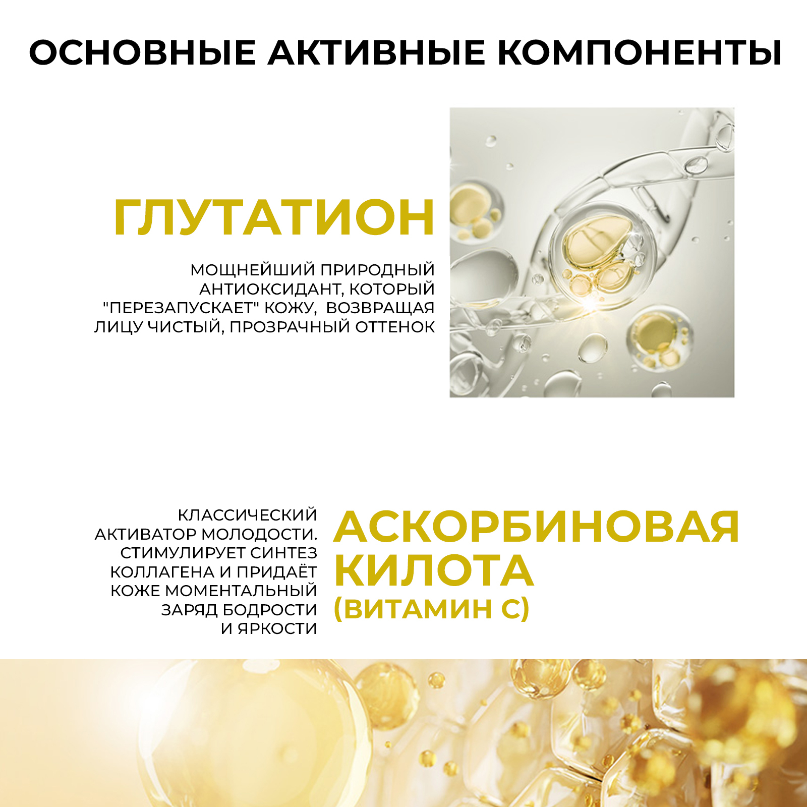 Глутатион (Glutathione) - мощнейший природный антиоксидант, который "перезапускает" кожу, ингибируя выработку меланина и возвращая лицу чистый, прозрачный оттенок.