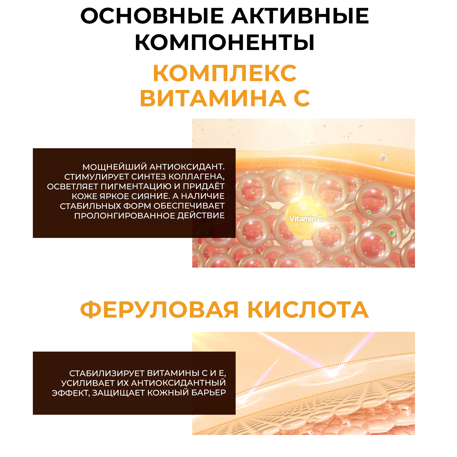 Феруловая Кислота (Ferulic Acid) усиливает действие Витамина С и Е, обеспечивая мощную защиту от фотостарения и стабилизируя активные ингредиенты.