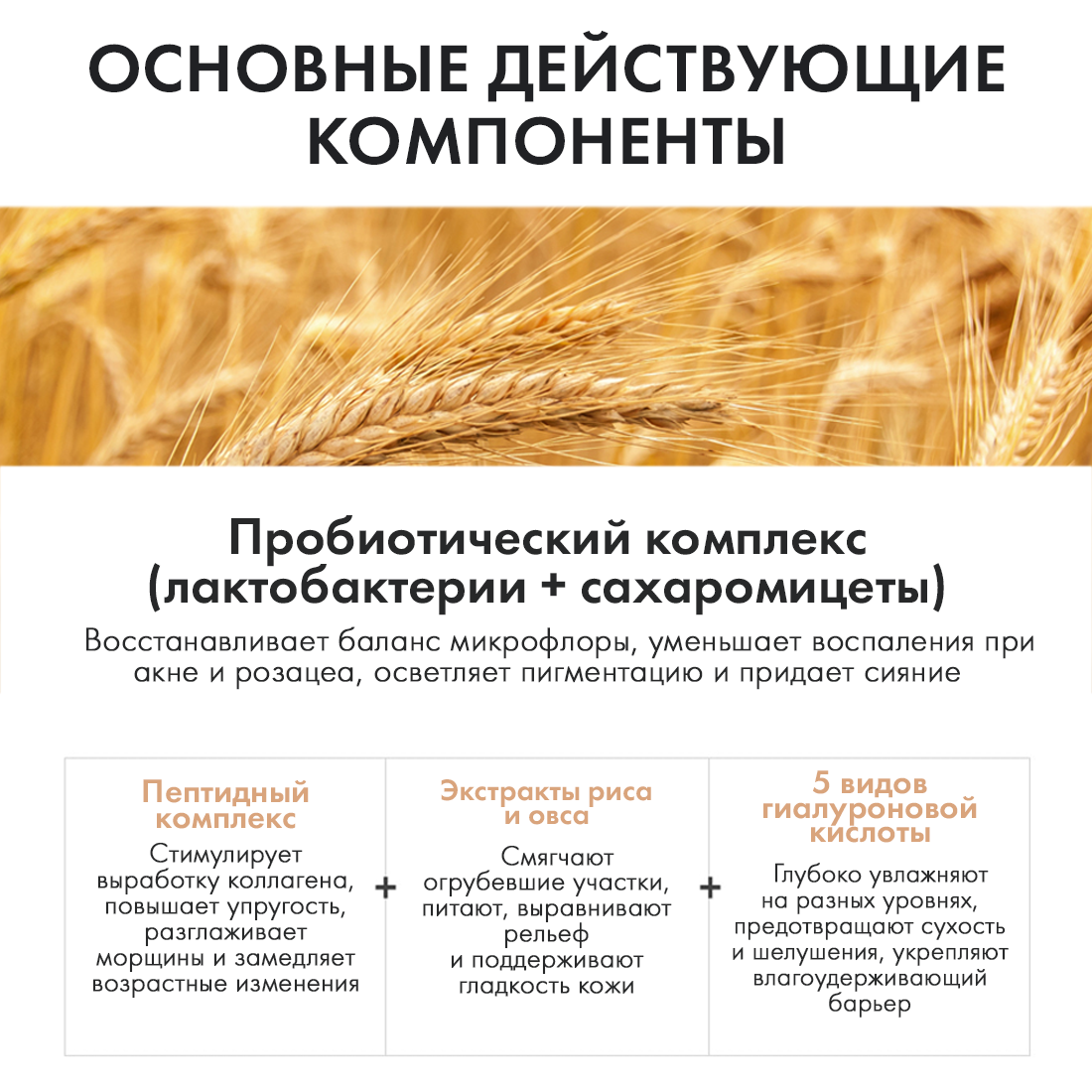 - Фермент лактобактерий (пробиотик) обладает противомикробными и противовоспалительными свойствами и помогает в лечении акне и розацеа. Помогает убивать вредные бактерии и создавать здоровую сбалансированную микрофлору.