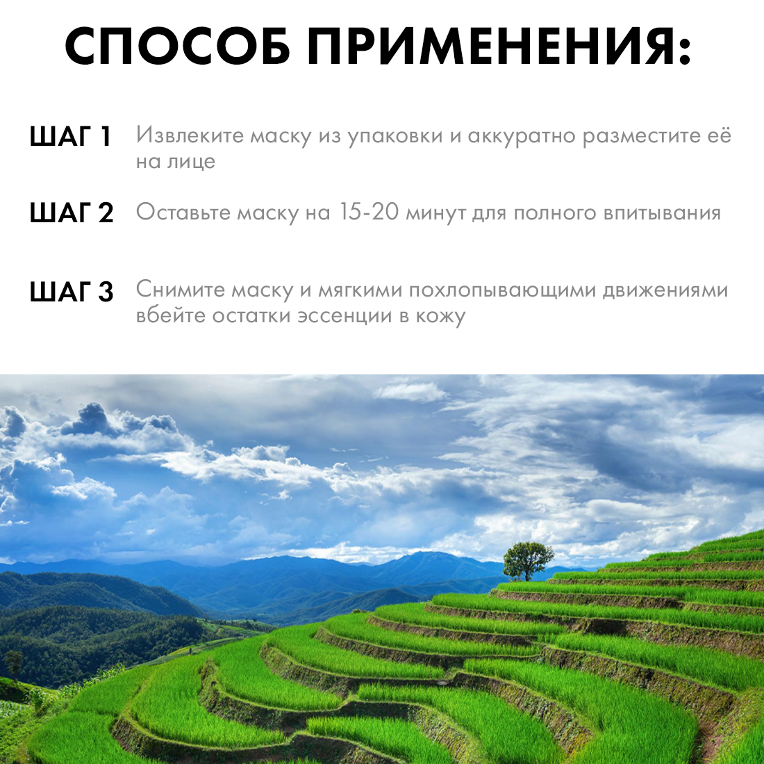 Способ применения: извлеките маску из упаковки. Затем расположите маску на поверхности очищенной кожи и оставьте на 15-20 минут. Аккуратно снимите маску и легко помассируйте, чтобы увлажняющая сыворотка впиталась. Эссенция сыворотки не требует смывания. Для достижения лучшего эффекта рекомендуется повторять процедуру 2-3 раза в неделю. Подходит для использования утром и вечером для всех типов кожи, включая сухую, чувствительную кожу женщин, мужчин.