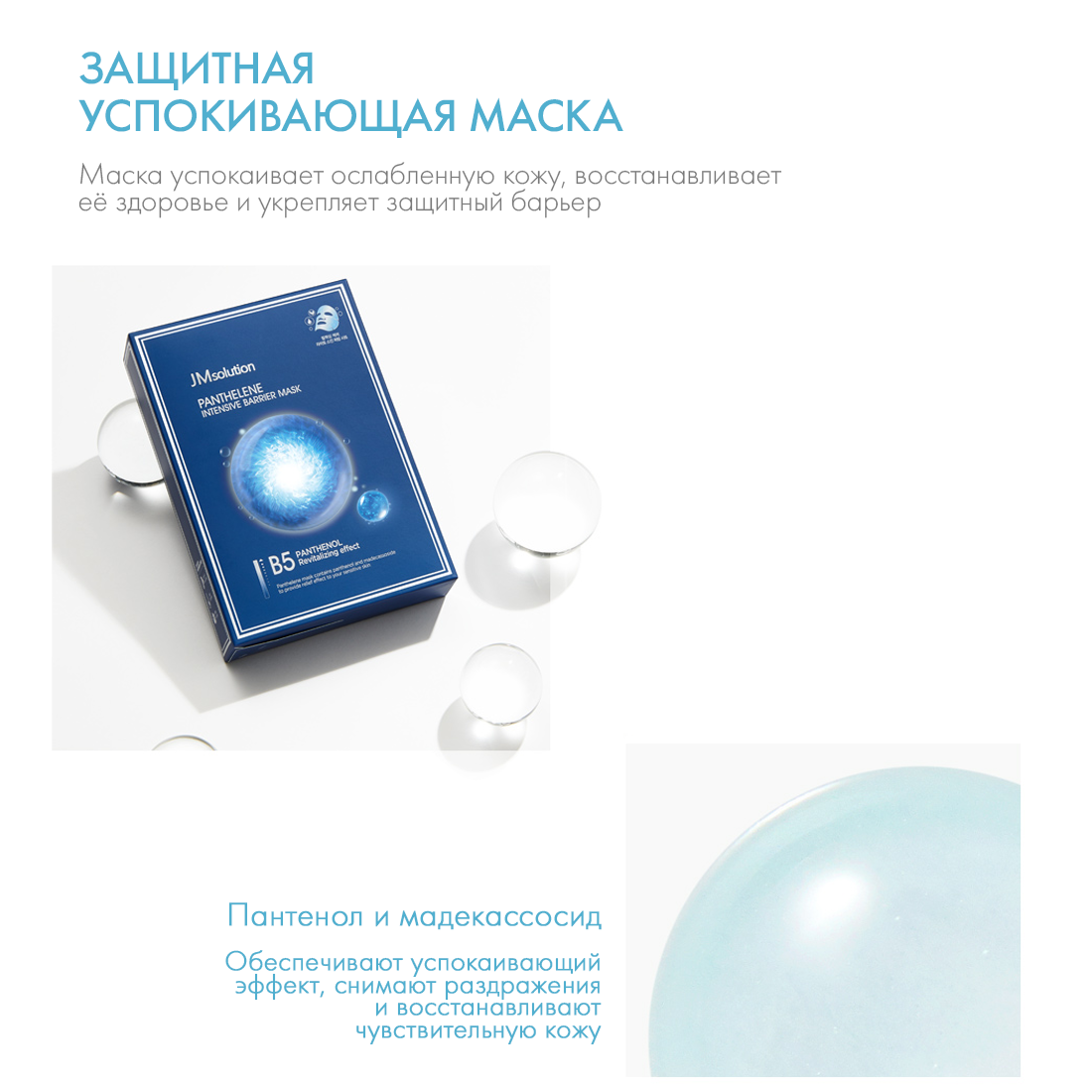 Интенсивная маска для восстановления барьера. Содержит пантенол и мадекассосид, благодаря чему маска обеспечивает глубокое увлажнение кожи, успокаивает ее, ускоряет процессы регенерации, нормализует процессы метаболизма клеток. Мадекассосид обладает сильными антиоксидантными свойствами, защищает кожу от старения, разглаживает морщины, убирает растяжки. Гипоаллергенная формула.