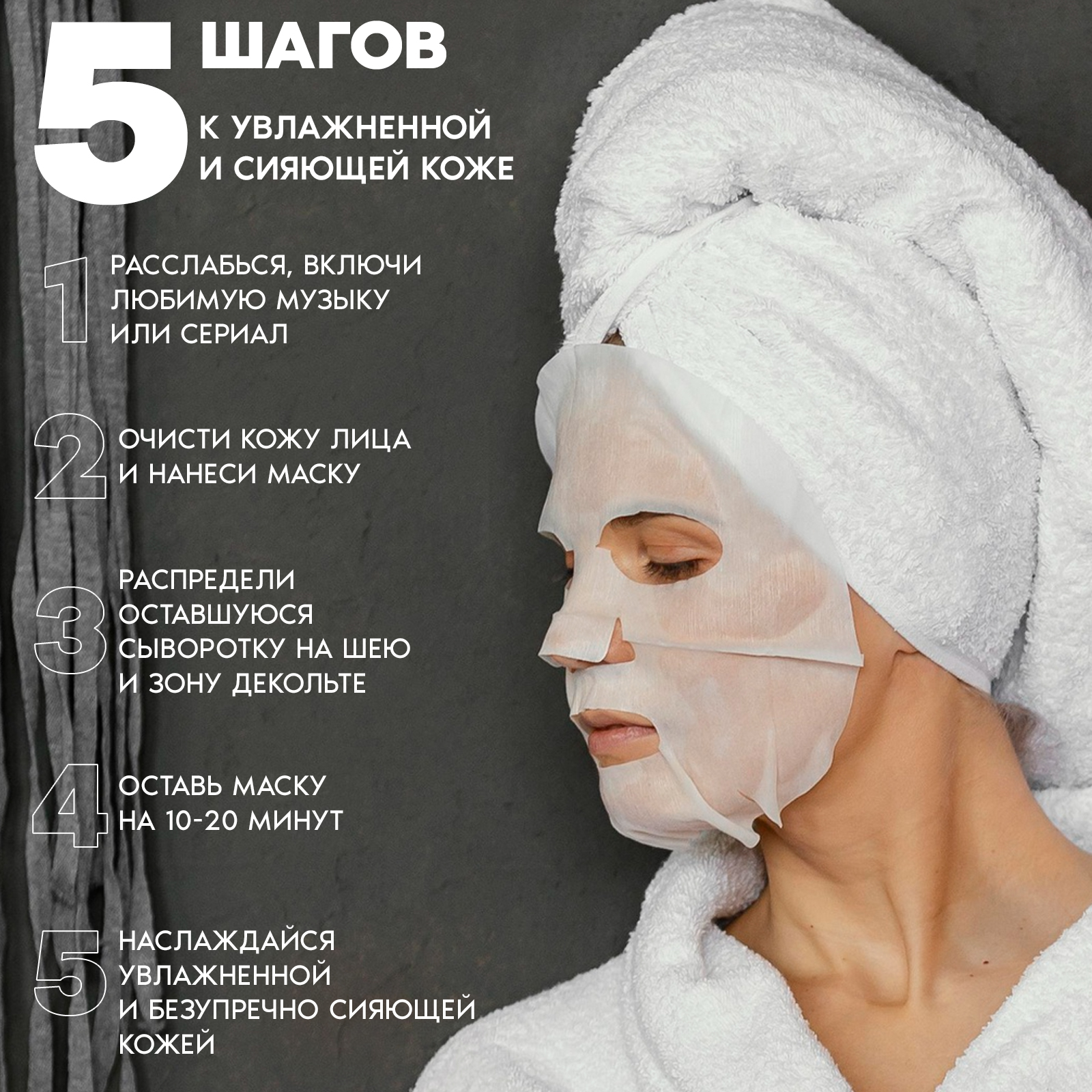 Способ применения: Извлеките маску из упаковки. Затем расположите маску на поверхности очищенной, тонизированной кожи и оставьте на 10-20 минут. Аккуратно снимите маску и легко помассируйте, чтобы увлажняющая сыворотка впиталась. Не требует смывания. Подходит для ежедневного использования. Для всех типов кожи. При обнаружении чувствительности к компонентам прекратить использование. Маска предназначена для одноразового применения.