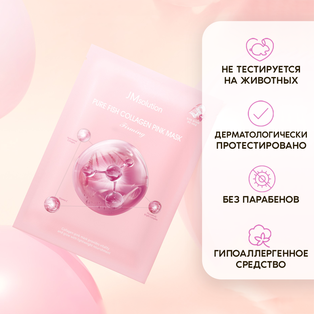 Коллагеновая маска активно увлажняет и способствует удержанию влаги, поддерживает оптимальный гидро-липидный баланс в течение дня. Средство повышает эластичность тканей, способствует разглаживанию кожных заломов и укрепляет тургор. Содержит витамин С — мощный антиоксидант, который осветляет пигментацию, выравнивает тон, оказывает антиоксидантное действие, сокращает морщины. Витамин В12 (Цианокобаламин) способствует уменьшению мимических морщин, сужает поры, ускоряет процессы клеточного обновления и активизирует обменные процессы в клетках эпидермиса. Экстракты граната и дамасской розы устраняют дряблость кожи, делают её более упругой и подтянутой, обогащают питательными компонентами, предотвращают появление сухости и обезвоженности. Запатентованный комплекс PhytoIN AC Bright Complex помогает усилить защитные функции кожи, предотвращая негативное влияние окружающей среды, а также обеспечивает максимальное увлажнение кожи и предотвращает потерю влаги. Рекомендация: маску можно использовать перед макияжем; в ночном уходе; «уход в один шаг» – подходит для одноэтапного ухода.