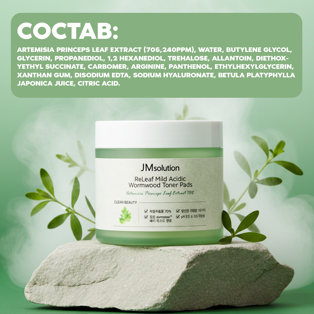 Состав: ARTEMISIA PRINCEPS LEAF EXTRACT (705,240PPM), WATER, BUTYLENE GLYCOL, GLYCERIN, PROPANEDIOL, 1,2 HEXANEDIOL, TREHALOSE, ALLANTOIN, DIETHOXYETHYL SUCCINATE, CARBOMER, ARGININE, PANTHENOL, ETHYLHEXYLGLYCERIN, XANTHAN GUM, DISODIUM EDTA, SODIUM HYALURONATE, BETULA PLATYPHYLLA JAPONICA JUICE, CITRIC ACID.